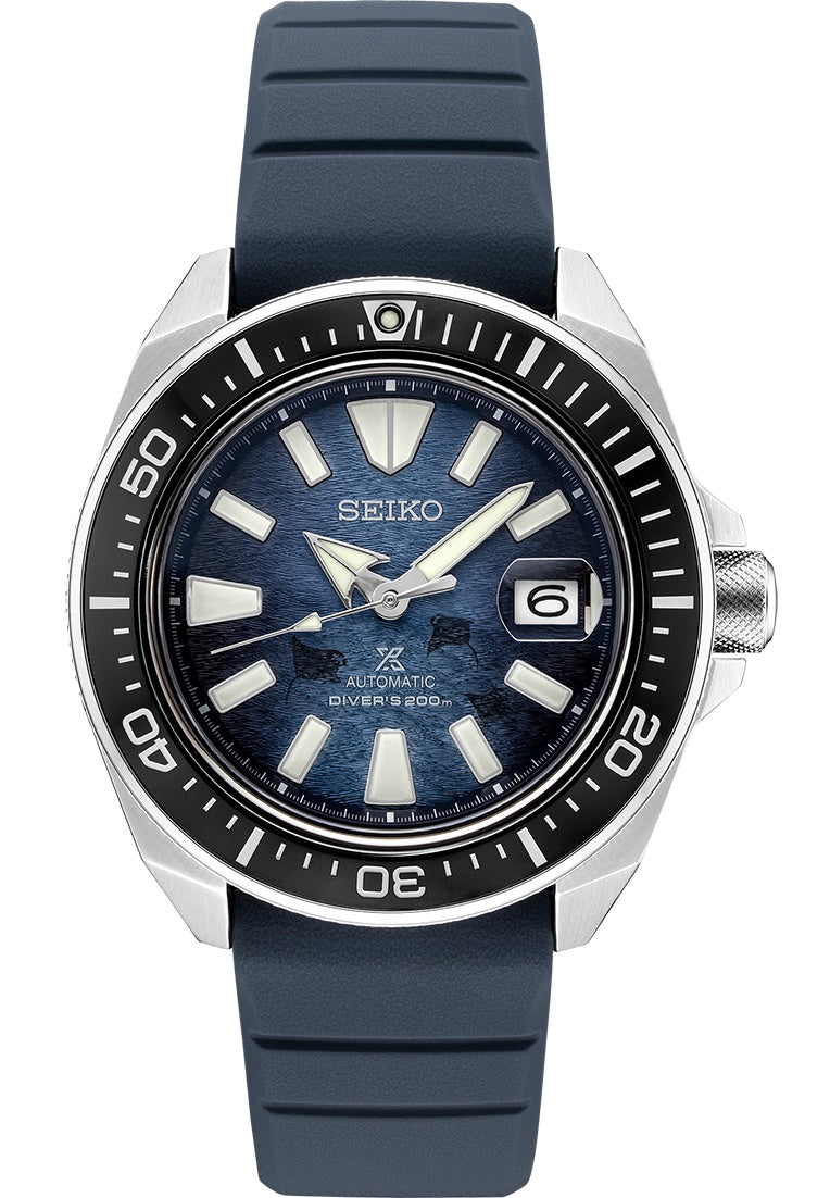 Seiko SE Save the Ocean Dark Manta Ray King Samurai Diver's Men's Rubber Strap Watch SRPF79K1
